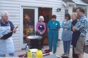 Steve, second from left in photo, has traveled in China and has spent the last thirty years perfecting his Asian style cuisine. Currently he is teaching a variety of cooking classes and can also be hired for dinner parties and small events.