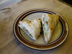 Melt the butter in a largepot, then add the garlic. Saute until the garlic is fragrant, about 1 minute. Add the wine, half and half, and saffron; simmer for ‘5 minutes. Add the clam juice, scallions, tomato, and lemon juice. Simmer for 5 minutes.